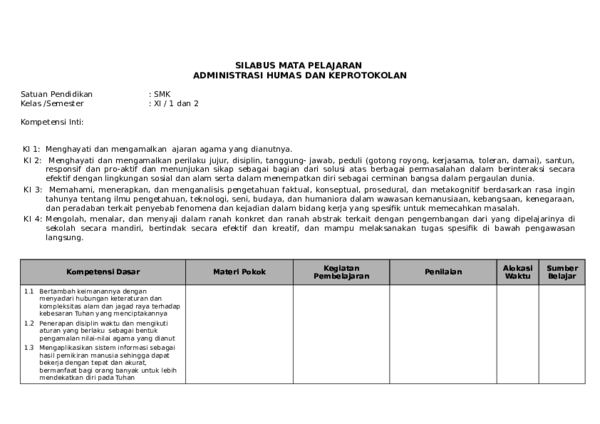 Membuka pelajaran dengan salam pembuka dan berdoa. Menghayatidanmengamalkan ajaran agama yang dianutnya. Silabus mata pelajaran administrasi humas dan keprotokolan satuan pendidikan : Pin di rpp dan silabus kurikulum terbaru. Download juga rpp otomatisasi tata kelola keuangan kelas xii kurikulum 2013 smk revisi 2017 penyusun menyadari silabus otomatisasi tata kelola keuangan kelas xii smk kurikulum 2013 revisi 2017 ini masih jauh dari sempurna.