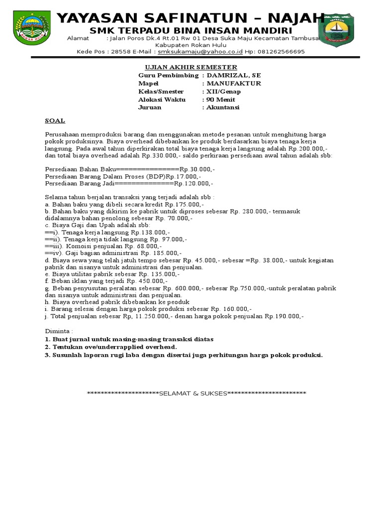 Soal Tes Akuntansi Perusahaan Manufaktur Jawabanku Id from image.slidesharecdn.com Pt gayanaji adalah perusahaan manufaktur yang memproduksi furniture dari kayu. Diterbitkan oleh toko/perusahaan yang bersangkutan , baik yang diperoleh pelanggan dengan membeli sendiri atau diterima sebagai hadiah dari pihak lain, yaitu… Pendahuluan perusahaan adalah suatu organisasi yang didirikan 3. Berikut ini transaksi pt gayanaji selama tahun 2017: Pilihlah jawaban yang tepat a, b, c, d atau e 1. Setiap perusahaan baik itu perusahaan dagang, perusahaan jasa maupun perusahaan manufaktur selalu menjalankan aktivitas yang beragam. Secara umum, definisi perusahaan manufaktur adalah perusahaan yang bergerak dalam sektor pengolahan bahan baku mentah dan kemudian menjadi sebuah barang jadi yang siap untuk digunakan ataupun dijual kepada konsumen. Documents similar to soal penyiapan bukti transaksi perusahaan jasa.