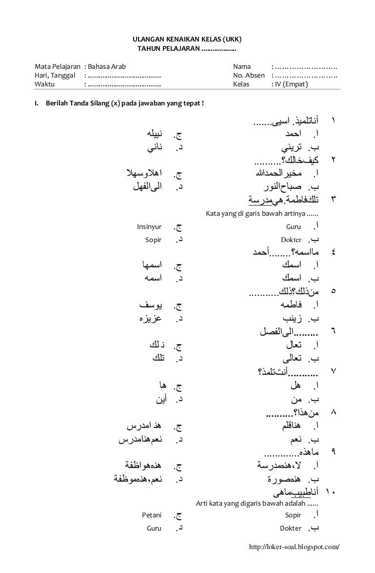 Soal ukk uas bahasa arab kelas x 10 semester 2 dan kunci jawaban perangkat pembelajaran mata pelajaran bahasa arab kelas 4 6 warta.